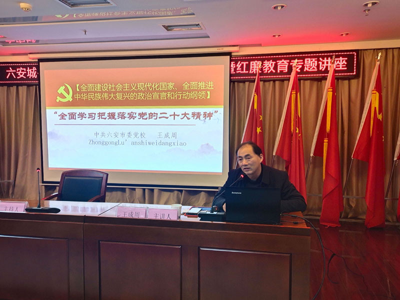 10月16日,市城投集團舉辦學習宣傳貫徹黨的二十大精神暨紅廉教育專題講座,邀請市委黨校經濟學教研室主任、副教授王成周作專題輔導報告。集團黨委書記、董事長榮扎厚主持會議,集團部分黨員干部及職工代表參加。
